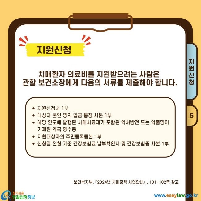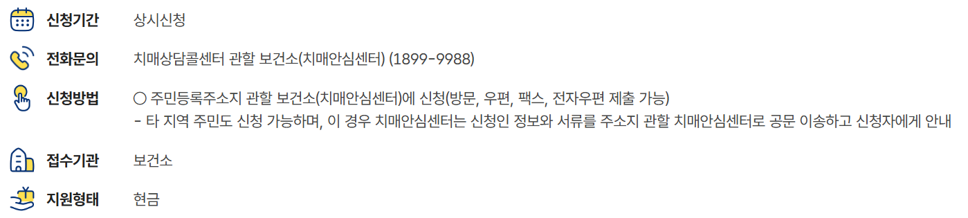 지원 항목은 치매 진단서와 소득 증명서 제출을 필수로 요구합니다.